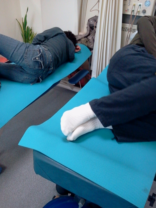 今回はゴルフのテイクバックのとき、股関節が上手く屈曲し、股関節で身体が回りやすくなるための基本である、殿筋を中心に行いました。