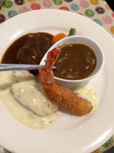「おいしいんよ、あそこのハンバーグ、海老フライ」